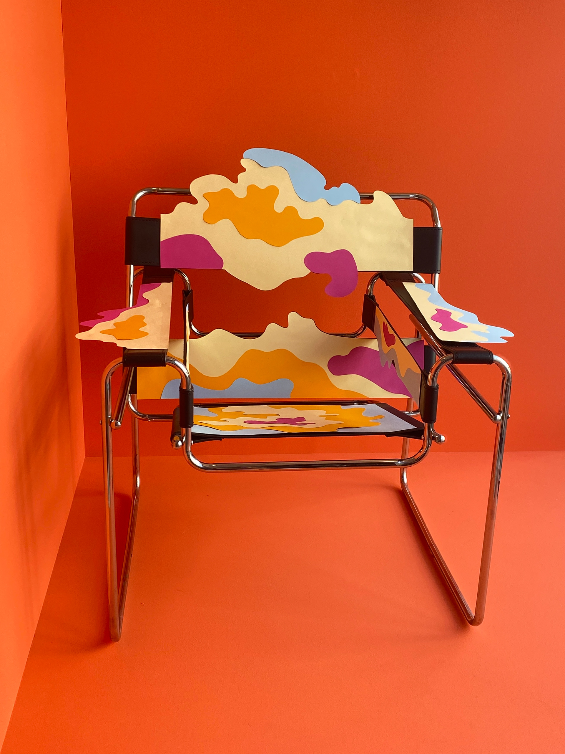 The first iteration, an ikebana arrangement. The second, an interpretation of Alessandro Mendini's 1973 redesign of the Wassily chair by Marcel Breuer.